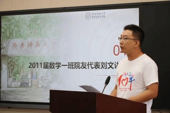 2011届数学一班刘文代表院友们感谢了母院的栽培之恩,回忆了当年求学期间的美好时光,对母院近年来取得的成绩感到骄傲和自豪,祝愿母校、母院明天更加辉煌!
