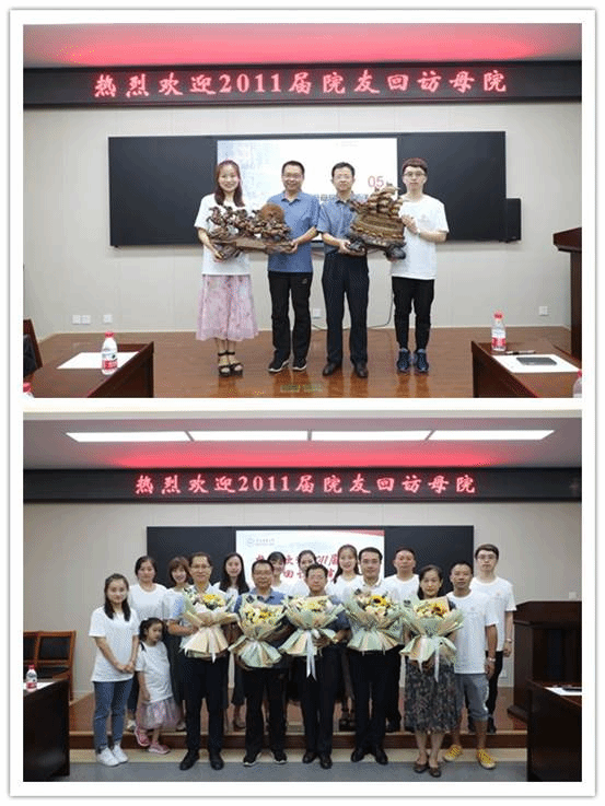 座谈会后,2011届数学二班院友向学院捐赠感恩母院礼品,并合影留念。