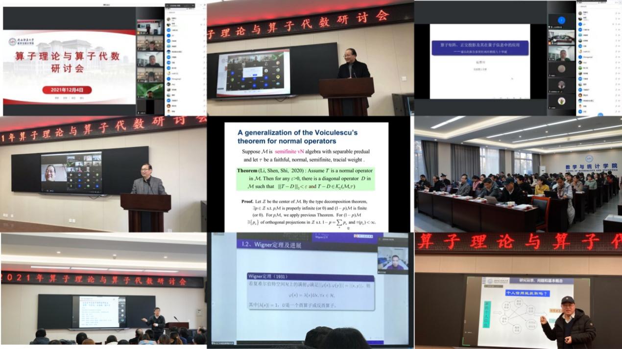 本次研讨会以算子理论与算子代数的发展为主要议题,采取线上与线下相结合的形式,开展了13场学术报告,为参会者提供了精彩纷呈的学术盛宴。