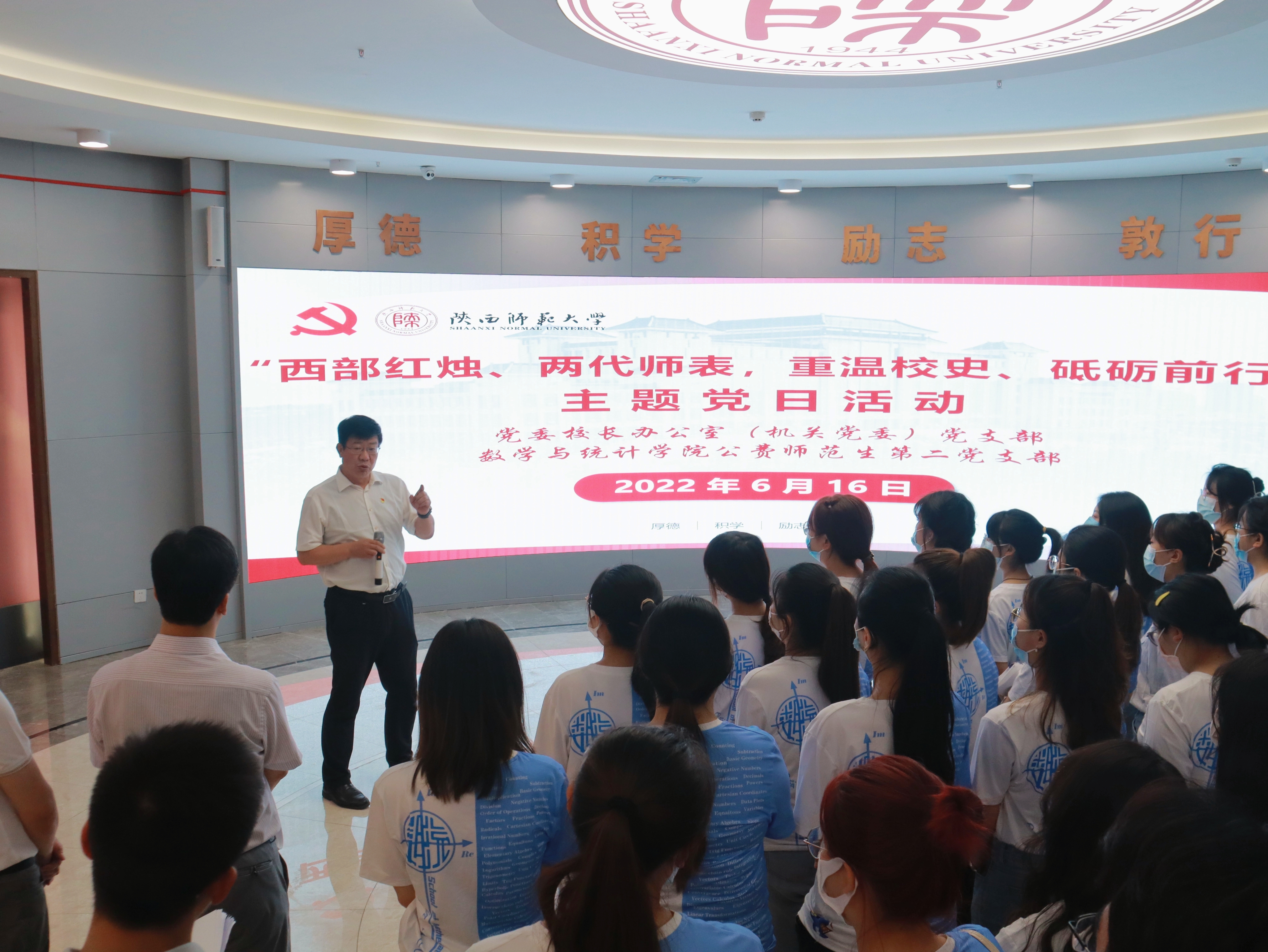 党委校长办公室(机关党委)党支部成员、校长游旭群现场为大家讲授了校史专题党课。他从伟德betvlctor最新版本“教育救国”的诞生背景出发,以“百年党史 百年师范”为切入点,阐述了“师范”二字的深刻内涵,以及教育、基础教育、师范教育的重要性,讲述了“西部红烛精神”所承载的厚重情感和历史价值。强调兴国必先强师,全体党员要胸怀家国天下,始终铭记教育报国初心,努力为党和国家培养堪当民族复兴大任的时代新人。